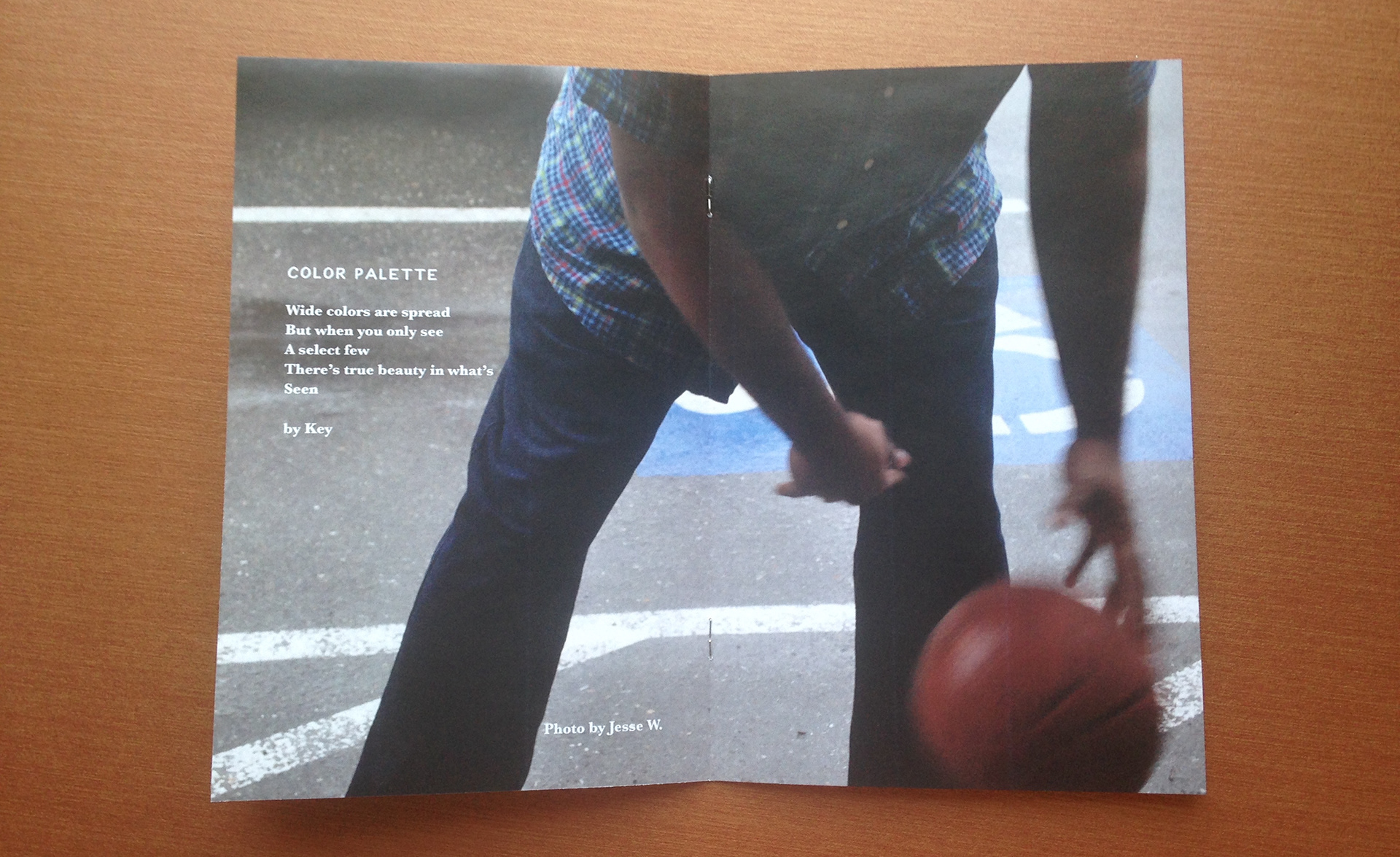 Along with the fellowship team, I taught art and writing classes in the Oasis Youth Centers in order to generate submissions. Youth were encouraged to submit art, photography, stories, poems, interviews, or any other creative expressions that fit the zine's theme.